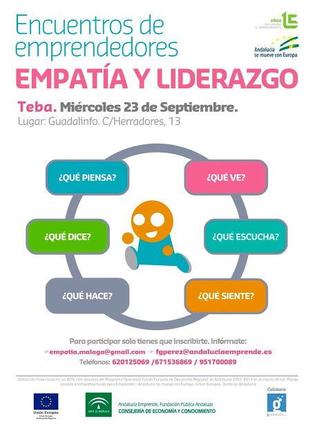 Encuentros de emprendedores «Empatía y Liderazgo». Se celebra en Teba el miércoles 23 de septiembre en el centro Guadalinfo, calle Herradores,13. Para participar solo tienes que inscribirte: