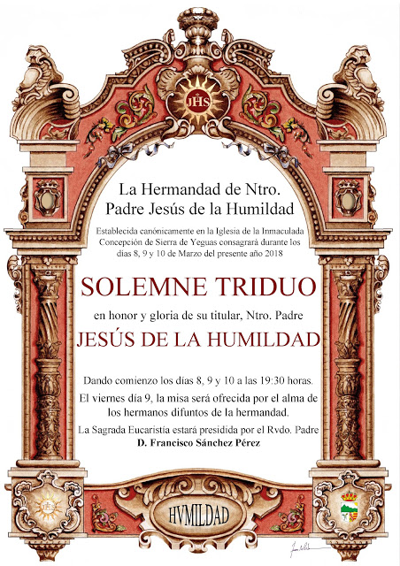 Durante este jueves, viernes y sábado la Hermandad de Jesús de la Humildad organiza triduo a su Sagrado Titular en la Iglesia de la Inmaculada Concepción de Sierra de Yeguas.