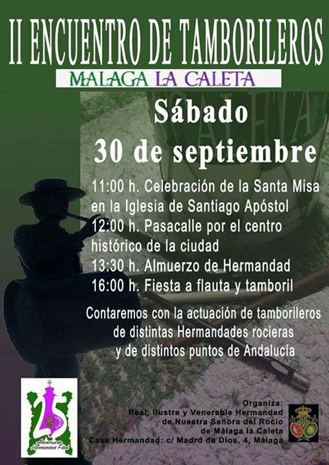 La Real Hermandad del Rocío de Málaga – La Caleta, ha organizado para este próximo sábado 30 de septiembre, en segundo encuentro de tamborileros.