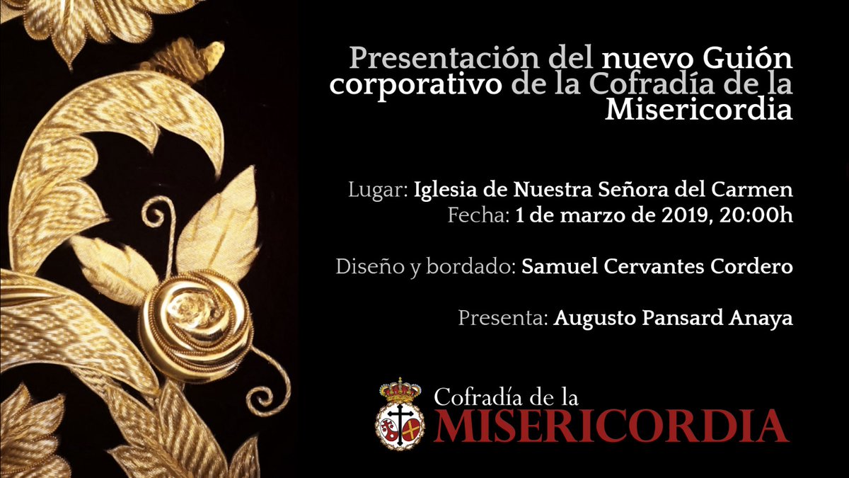 La perchelera Iglesia del Carmen acogerá este viernes el acto de la nueva obra diseñada y bordada por Samuel Cervantes, la cual será presentada por el cofrade Augusto Pansard.