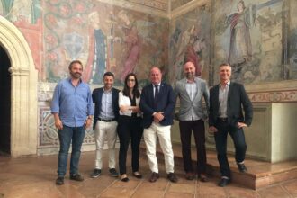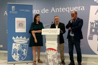 El alcalde en funciones de Antequera, Manolo Barón, junto a Ana Cebrián, concejal de Patrimonio Histórico y Pepe Escalante, director…