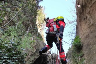 Los bomberos rescatan a un perro atrapado en una cascada en Algaidas