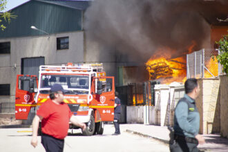 Pasadas las dos y veinte de la tarde de hoy se declaraba un aparatoso incendio en una nave de palets…