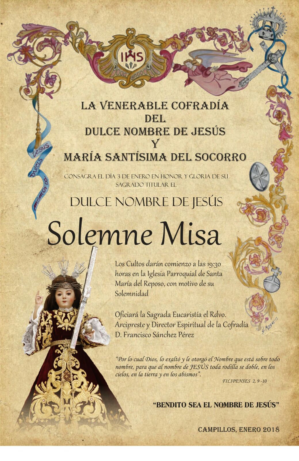 La Venerable Cofradía del Dulce Nombre de Jesús «Niño Chiquito» y María Santísima del Socorro de Campillos organiza cultos en honor a su Sagrado Titular con motivo del día de su Festividad.