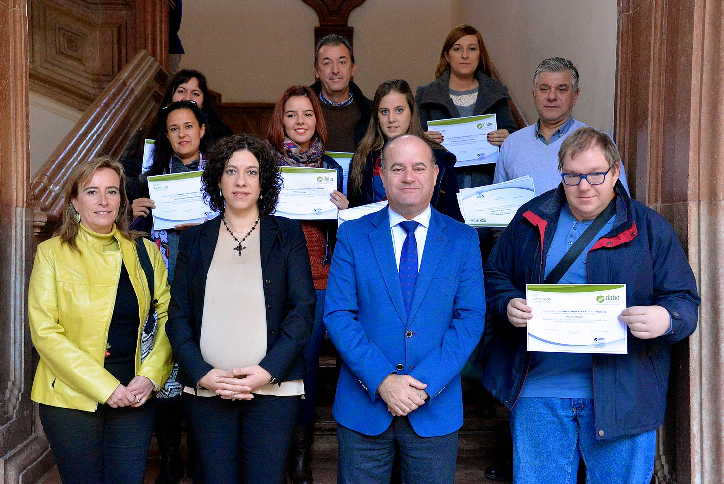 En el día de hoy ha tenido lugar el acto de entrega de diplomas relativos al desarrollo de diversos cursos de teleformación para desempleados que han sido completados por 12 personas a través de la iniciativa impulsada por el Área de Empleo del Ayuntamiento de Antequera y la empresa especializada DaboConsulting. Dicho acto ha contado con la presencia del alcalde de Antequera, Manuel Barón, la teniente de alcalde de Empleo, Turismo y Comercio, Belén Jiménez, y el director del OAL de Promoción y Desarrollo, Rafael Morente.