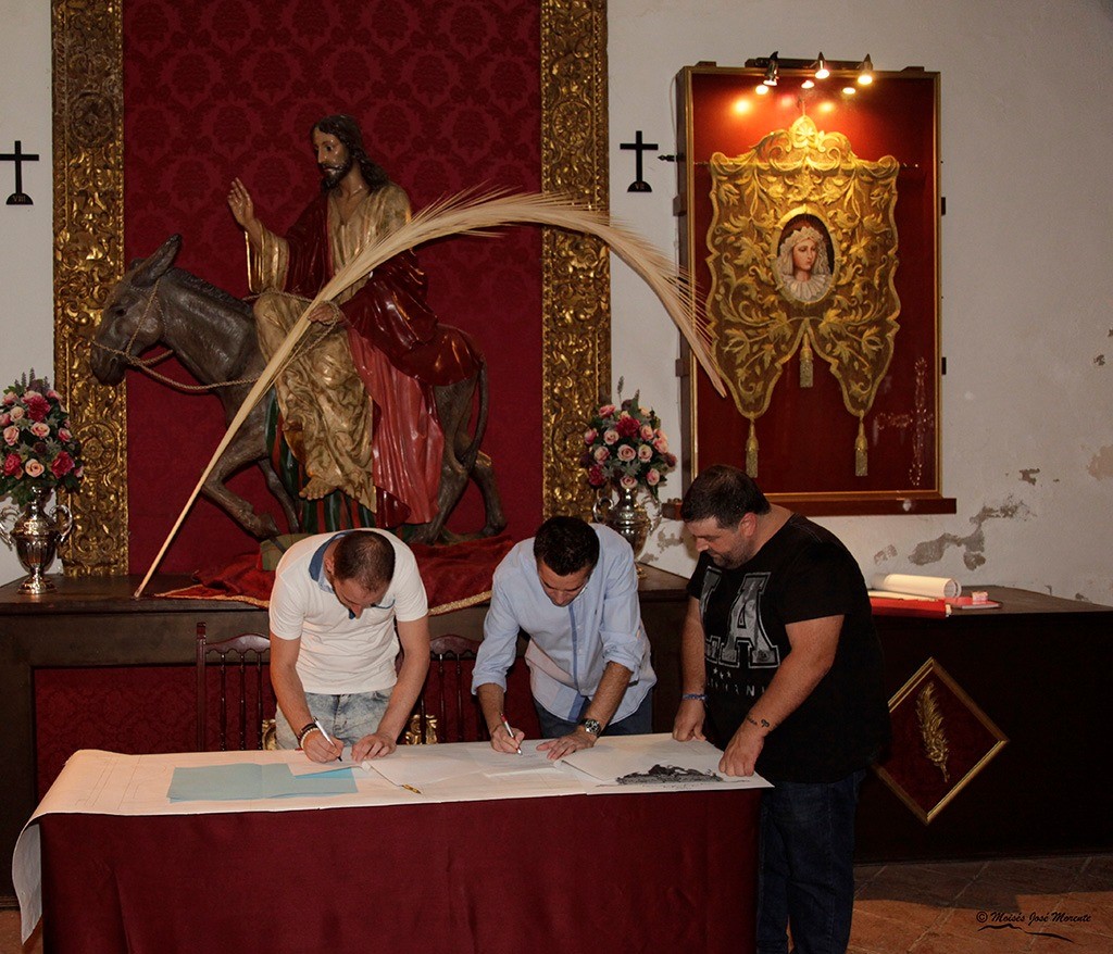 Tal y como nos informa el cronista de la Cofradía de la Pollinica de Antequera, Moises Morente, en la tarde del viernes 29 de Agosto en la Iglesia de San Agustin, tuvo lugar la firma del contrato de la primera fase del Trono de Jesus en su entrada a Jerusalen que se espera esté prevista para el próximo Domingo de Ramos.