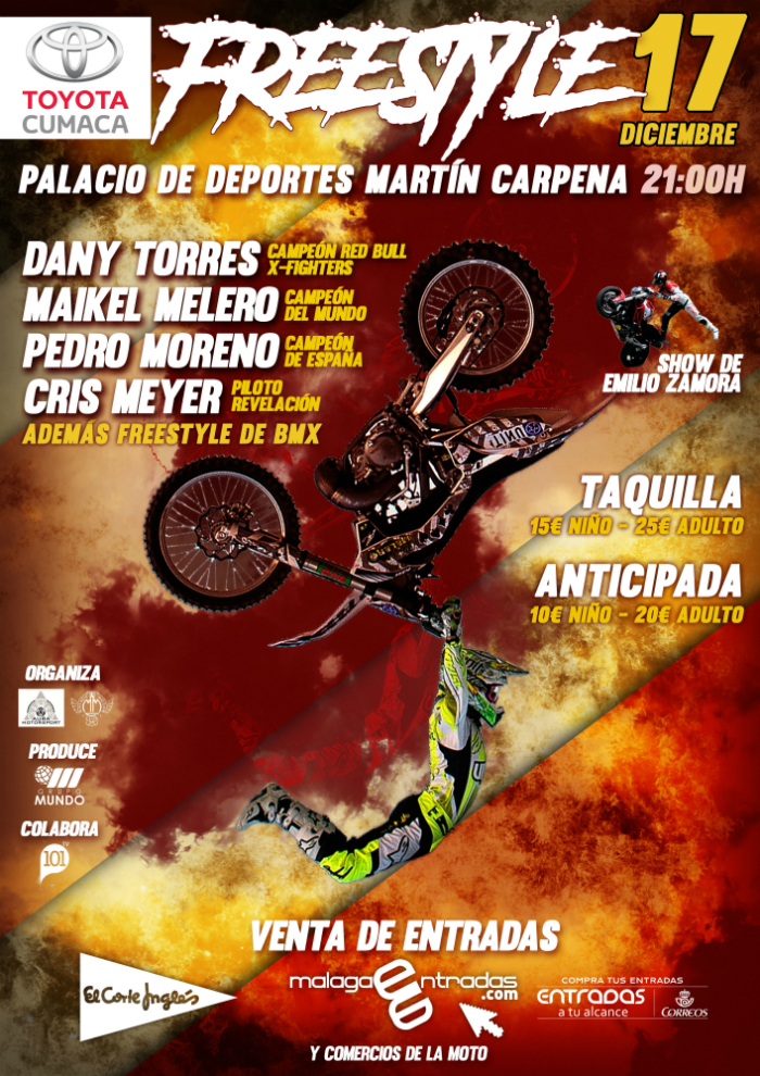 Las fiestas navideñas contarán con un gran evento del motor en el Palacio de Deportes Martín Carpena, el viernes 17 de diciembre a las 21:00 horas: El Free Style Málaga 2016.
