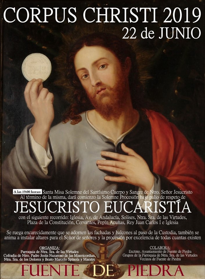 La  parroquia de Ntra. Sra. de las Virtudes de Fuente de Piedra organiza los siguientes cultos con motivo de la celebración del Corpus Christi: