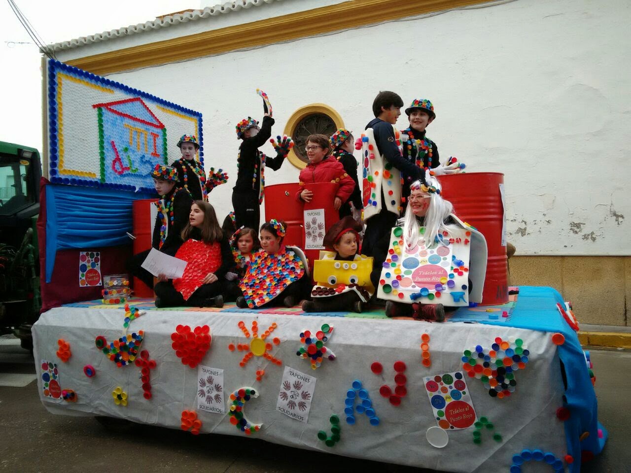 La Asociación AMIDIS participó en el carnaval con una carroza en la que iban disfrazados con tapones de botellas, el objetivo de esta carroza era pasar un buen rato y además concienciar a la gente para que done sus tapones a esta asociación y de esta forma ayudar a Javier, un niño de Mollina con parálisis cerebral que debe recibir un caro tratamiento en Santiago de Compostela.