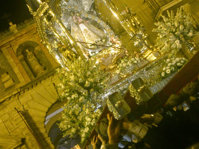 Sobre las diez de la noche, la imagen ha cruzado su patio para entrar en el templo que le da cobijo y desde donde protege la ciudad de Antequera durante todos los días del año.