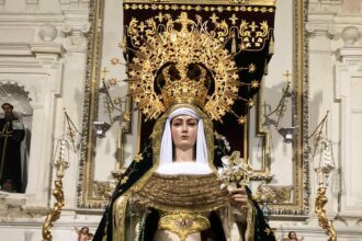 Los hermanacos han notado más alivio en sus hombros, al eliminarse peso del trono al cambiar las andas a aluminio un material más ligero; un trabajo que ha sido posible gracias a la donación realizada por la empresa Grupo ASV Servicios Funerarios.
