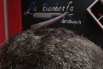 gomina marcando bien la raya para que esté muy chulo y lo importante que es