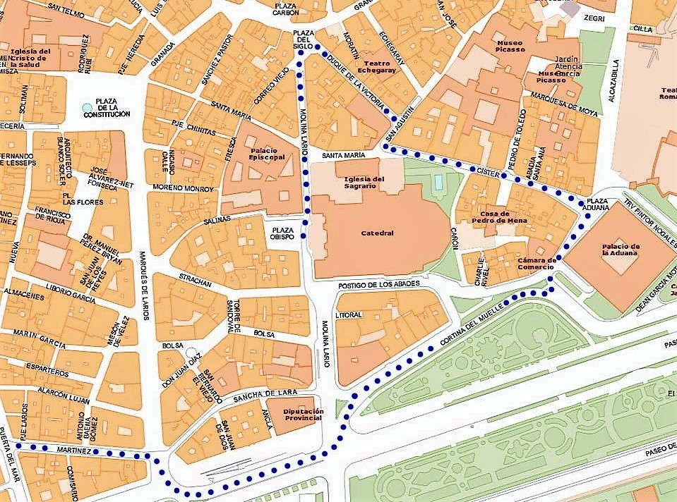 17.00 Salida Virgen de la Victoria. S.I. Catedral Patio de los Naranjos, Císter, San Agustín, Duque de la Victoria, Pza. del Siglo, Pza. del Carbón, Granada, Pza. de la Constitución, Marqués de Larios, Rotonda Marqués de Larios (18:30), Pza. de la Marina, Molina Lario, Cortina del Muelle, Pza. de la Aduana, Císter, Patio de los Naranjos – Catedral (20:00). ATRIO DE LA CATEDRAL (20:45) . IRÁ ACOMPAÑADA POR LA BANDA DE MÚSICA DE LA VERACRUZ DE ALMOGIA.