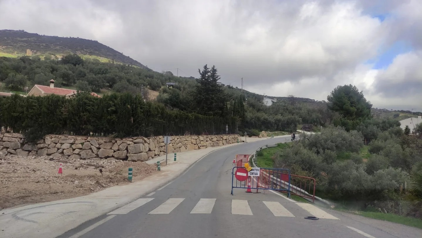 Tras las inundaciones registradas en Antequera el pasado mes de noviembre de 2024, la carretera MA-4402, que da servicio a las pedanías de La Joya, Los Nogales y La Higuera, presentaba daños en sus infraestructuras, por lo que ha permanecido cortada temporalmente al tráfico de vehículos pesados.