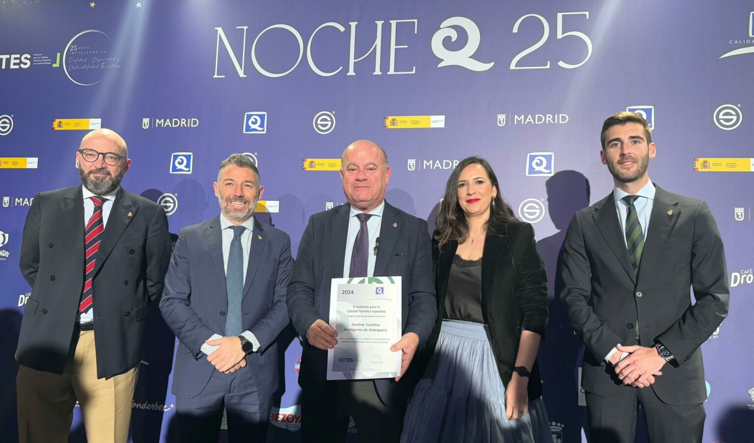 Antequera sigue posicionándose como referente en materia de turismo inteligente tras recibir el certificado Q de Calidad Turística. Este galardón, que distingue la excelencia y sostenibilidad en el ámbito turístico, fue otorgado durante la noche del jueves 23 de enero en el Palacio de Cibeles de Madrid, sede del Ayuntamiento de la capital, en el marco de la gran gala del turismo español organizada por el Instituto para la Calidad Turística Española y la Sostenibilidad (ICTES).