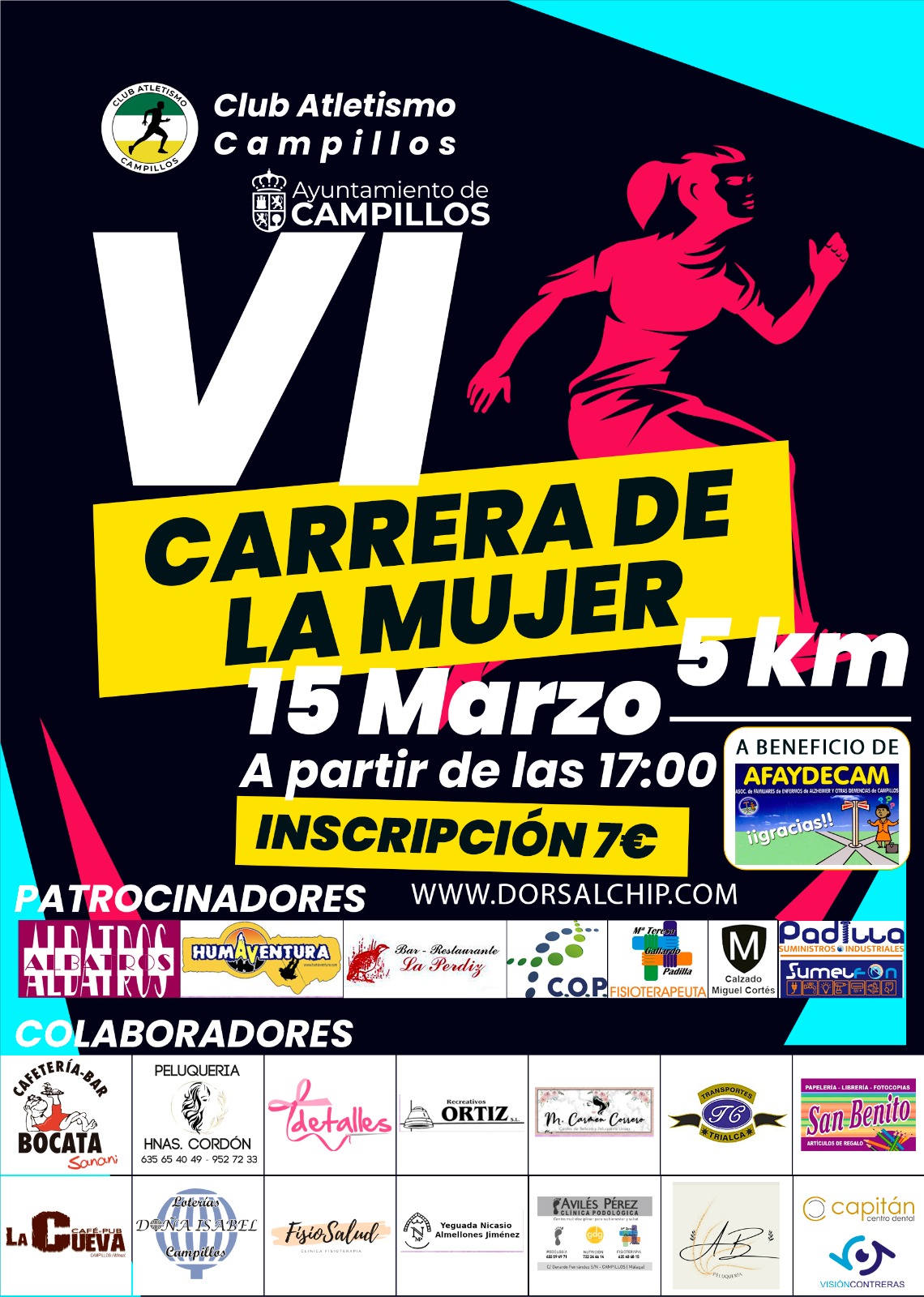 Las mujeres interesadas pueden inscribirse a través de la web www.dorsalchip.es hasta las 14:00 horas de este viernes 14 por un coste de 7 euros. Un euro de cada inscripción irá destinado a AFAYDECAM (Asociación de Familiares de Enfermos de Alzheimer y otras Demencias de Campillos).