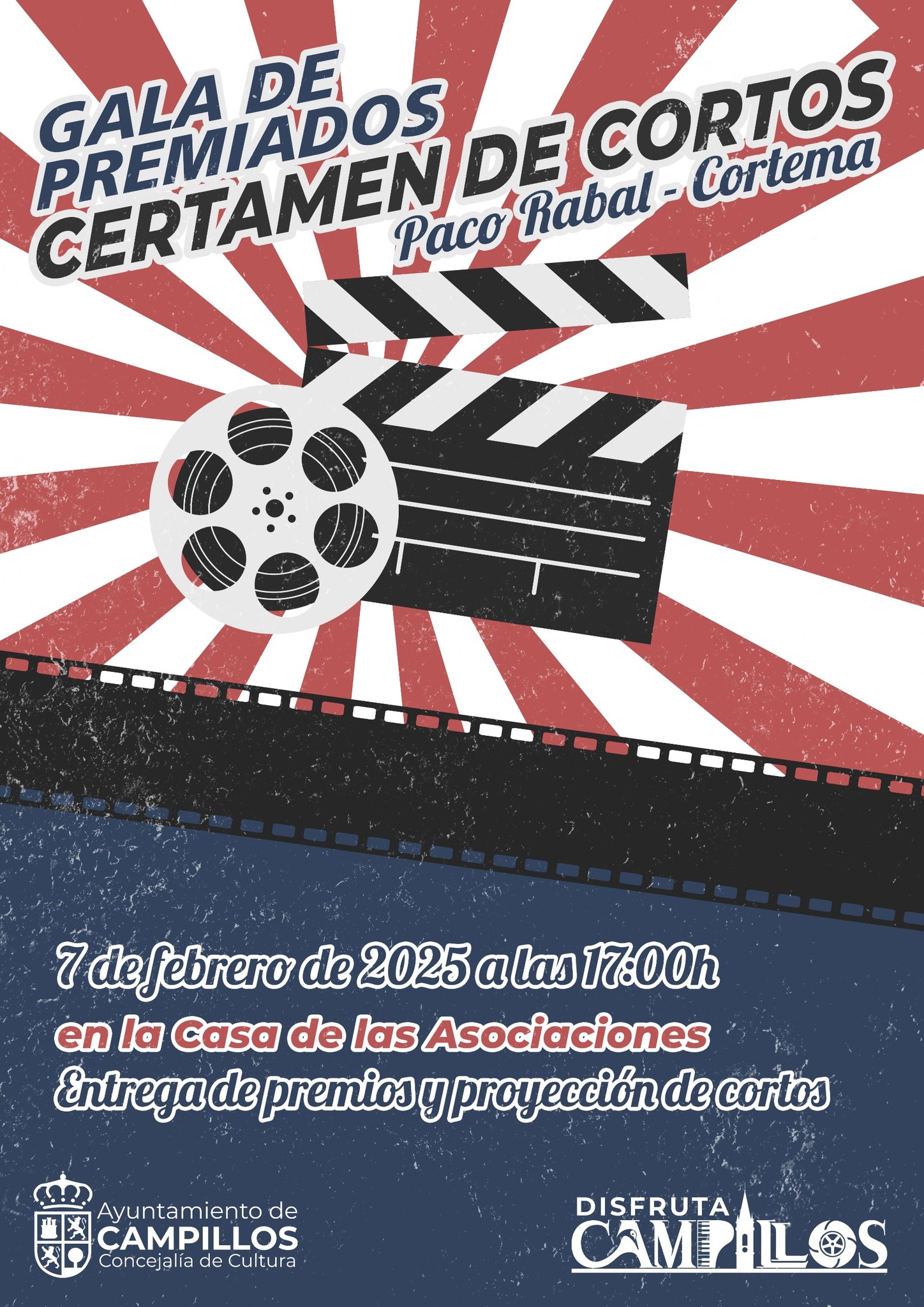 La Concejalía de Cultura del Ayuntamiento de Campillos celebrará este viernes 7 de febrero la gala de entrega de premios y proyección de los cortometrajes galardonados en el Certamen de Cortos «Paco Rabal» – Cortema 2024. El evento tendrá lugar en el salón de actos de la Casa de las Asociaciones a partir de las 17:00 horas.