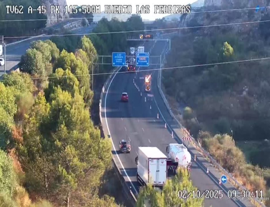 Como alternativa, se está desviando el tráfico a la altura de Las Pedrizas por la A-45 hacia Antequera para que los coches puedan volver a incorporarse más adelante a la A-92 tras pasar el tramo del siniestro.