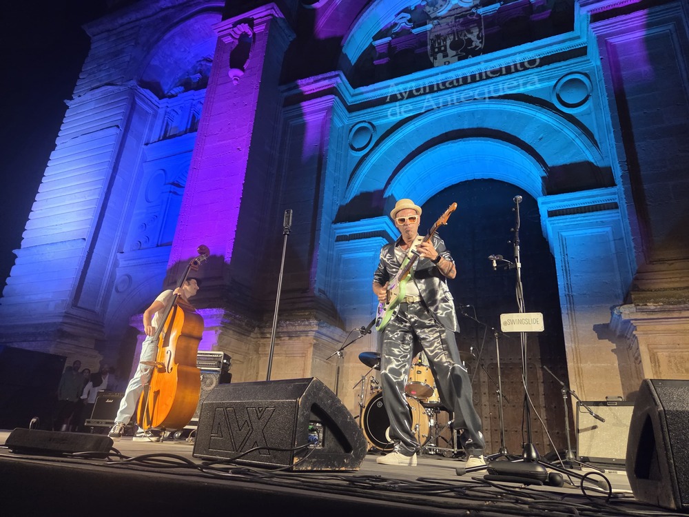 El Antequera Blues Festival ha cerrado este sábado su trigésimo quinta edición con éxito de asistencia. Durante los días 25 y 26 de julio, la plaza de los Escribanos, al pie de la Colegiata de Santa María, volvió a convertirse en el epicentro musical del verano antequerano, acogiendo a centenares de personas que disfrutaron del mejor blues en un ambiente fresco y festivo. La cita ha estrenado este año organización de la mano de la promotora local MLMA Storm tras la retirada de Cambayá Producciones.