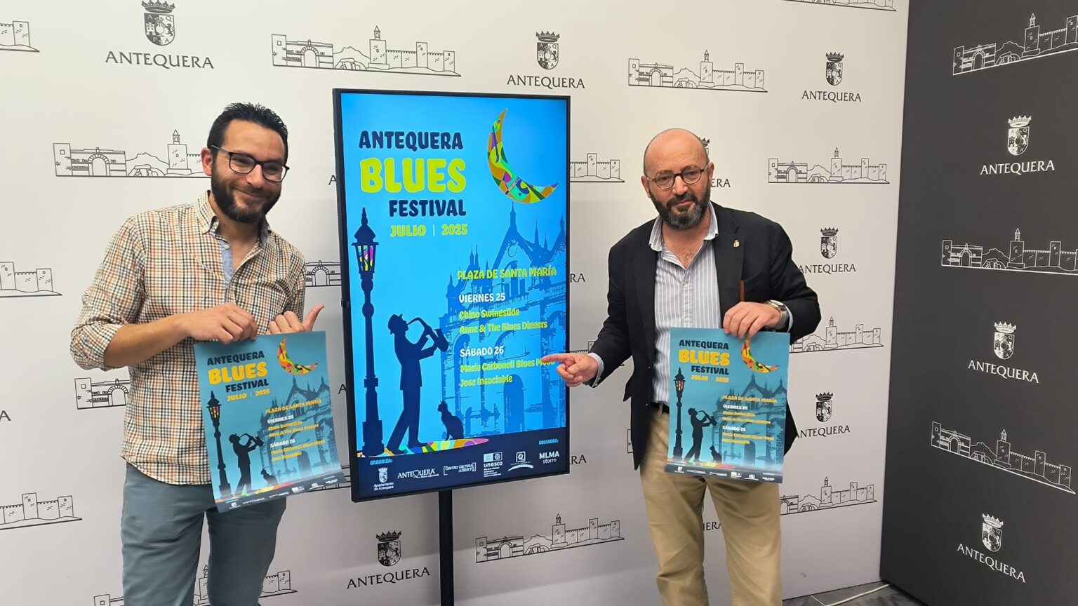 El Antequera Blues Festival celebrará los próximos días 25 y 26 de julio su trigésimo quinta edición, marcando el inicio de una nueva etapa en su trayectoria. Así lo ha anunciado este jueves el concejal delegado de Cultura, José Medina Galeote, durante la rueda de prensa de presentación del cartel, acompañado por Ángel Peralta en representación de la promotora antequerana MLMA Storm, que asume la organización del festival tras la retirada de Cambayá Producciones.