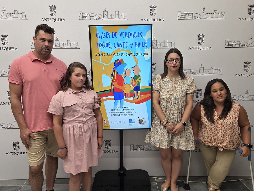 El Ayuntamiento de Antequera ha confirmado la puesta en marcha de una nueva edición de las clases de Verdiales en la pedanía de La Joya. La teniente de alcalde delegada de Fiestas Mayores, Tradiciones y Promoción del Flamenco, Elena Melero, ha sido la encargada de presentar esta iniciativa acompañada por la concejala de Anejos, Sara Ríos, y Diego Salcedo, en representación de la Panda de Verdiales ‘San Gabriel de La Joya’, colectivo encargado de impartir las clases.