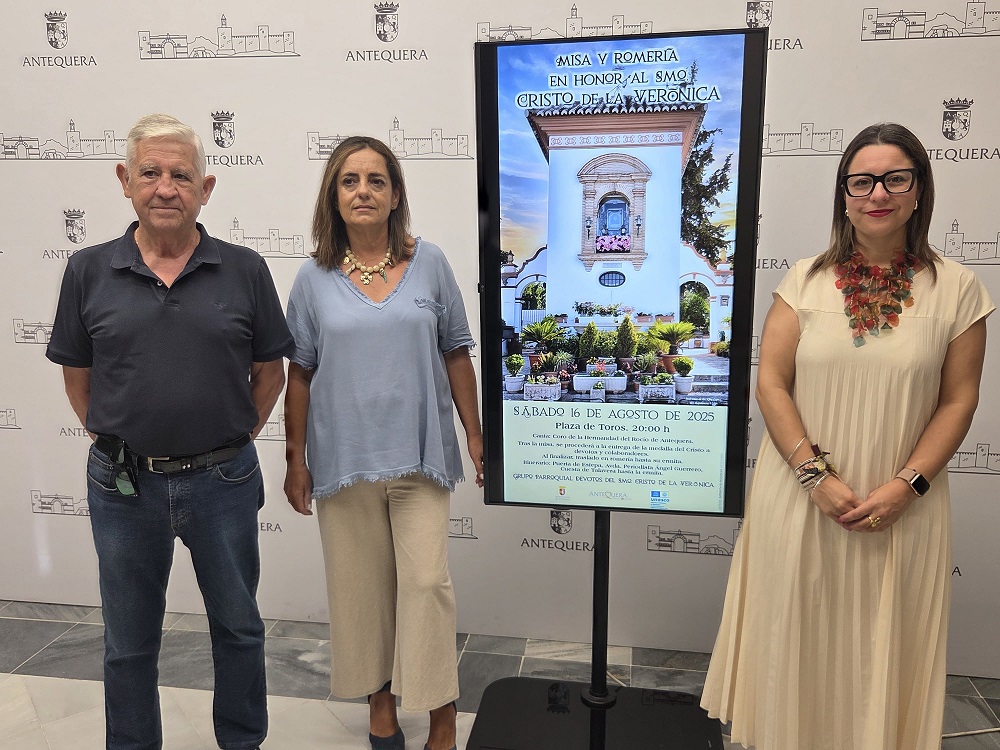 Antequera celebrará el próximo sábado 16 de agosto la tradicional misa y romería del Señor de la Verónica. Una multitudinaria cita que tendrá lugar a las ocho de la tarde en el ruedo de la Plaza de Toros, siendo esta una de las principales novedades de este año, recuperando así el escenario de tiempo atrás.