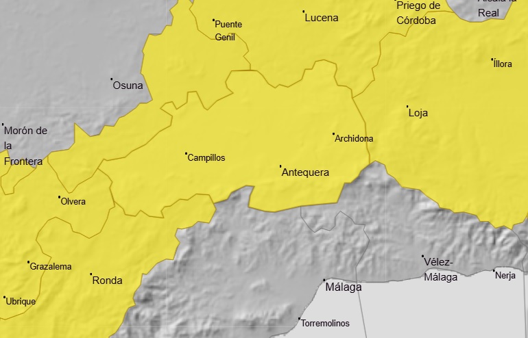 La Agencia Estatal de Meteorología (AEMET) ha activado este viernes 10 de octubre el aviso amarillo por fuertes lluvias y tormentas en la comarca de Antequera.