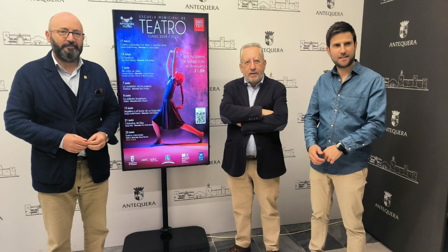 Antequera vivirá durante las próximas semanas una intensa actividad escénica gracias al ciclo de representaciones teatrales que pone en marcha la Escuela Municipal de Teatro. Así lo han anunciado en rueda de prensa el concejal delegado de Cultura, José Medina Galeote, el director de la Escuela, Jordi Aguilera, y el director de la Real Academia de Nobles Artes, José Escalante, que han detallado los pormenores de esta ambiciosa programación.