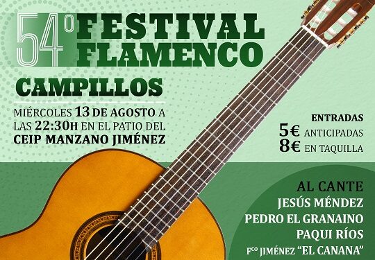 La jornada de víspera se completará con el LIV Festival de Cante Flamenco de Campillos, organizado por la Peña Flamenca ‘La Soleá’ en colaboración con la Concejalía de Cultura. La cita tendrá lugar a las diez y media en el CEIP Manzano Jiménez y contará con un cartel de primer nivel: al cante, Jesús Méndez, Pedro ‘El Granaíno’, Paqui Ríos y Francisco ‘El Canana’; y al toque, Pepe del Morao, Patrocinio Hijo, José de Pura y Antonio Carrión. La velada estará presentada por el periodista y crítico flamenco Juan Garrido.