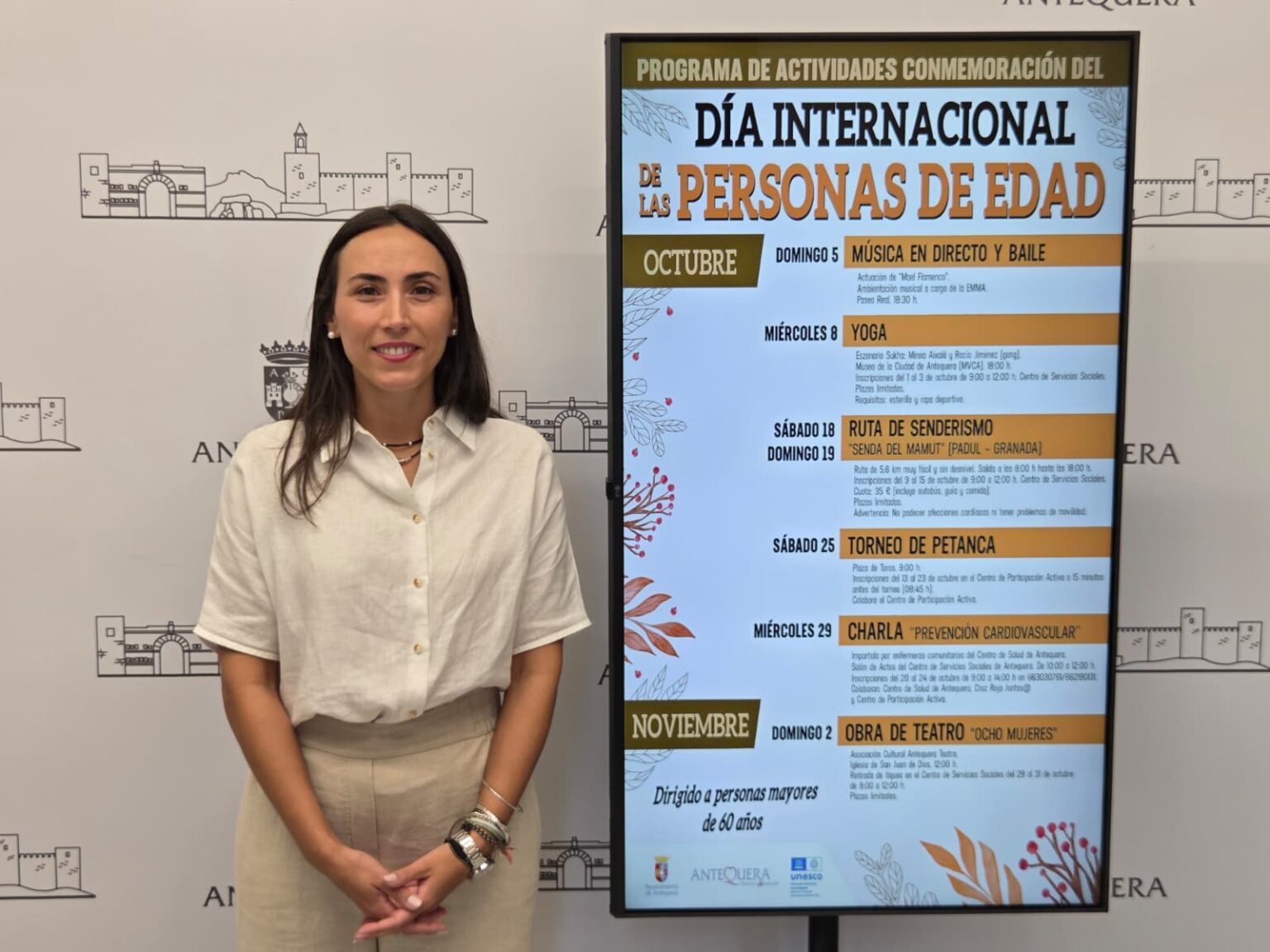 El Ayuntamiento de Antequera, a través del Área de Familia, Infancia, Mayores y Equidad, ha preparado un completo programa de actividades para conmemorar el Día Internacional de las Personas de Edad. La concejal del área, María Sierras, ha dado a conocer este jueves 25 de septiembre la programación, destacando que “son actividades pensadas para todos los gustos, diversas y que se celebrarán durante todo el mes de octubre, extendiéndose incluso a comienzos de noviembre”.