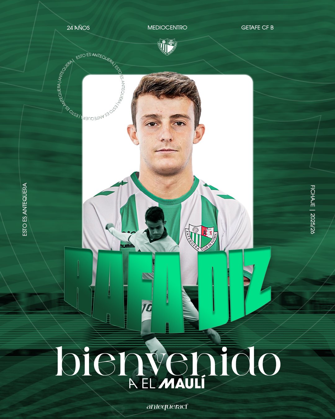 El Antequera CF incorpora a Rafa Diz (Córdoba, 9 de octubre de 2000), mediocentro de carácter ofensivo que refuerza el centro del campo.