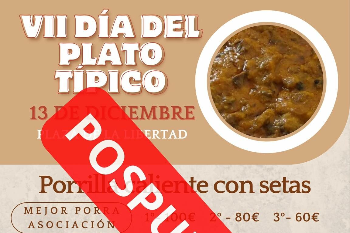 El Ayuntamiento de Villanueva del Trabuco ha anunciado el aplazamiento de la VII edición del Día del Plato Típico debido a la previsión de lluvias para los próximos días y a las solicitudes presentadas por diversas asociaciones del municipio para trasladar la actividad a otra fecha más adecuada.