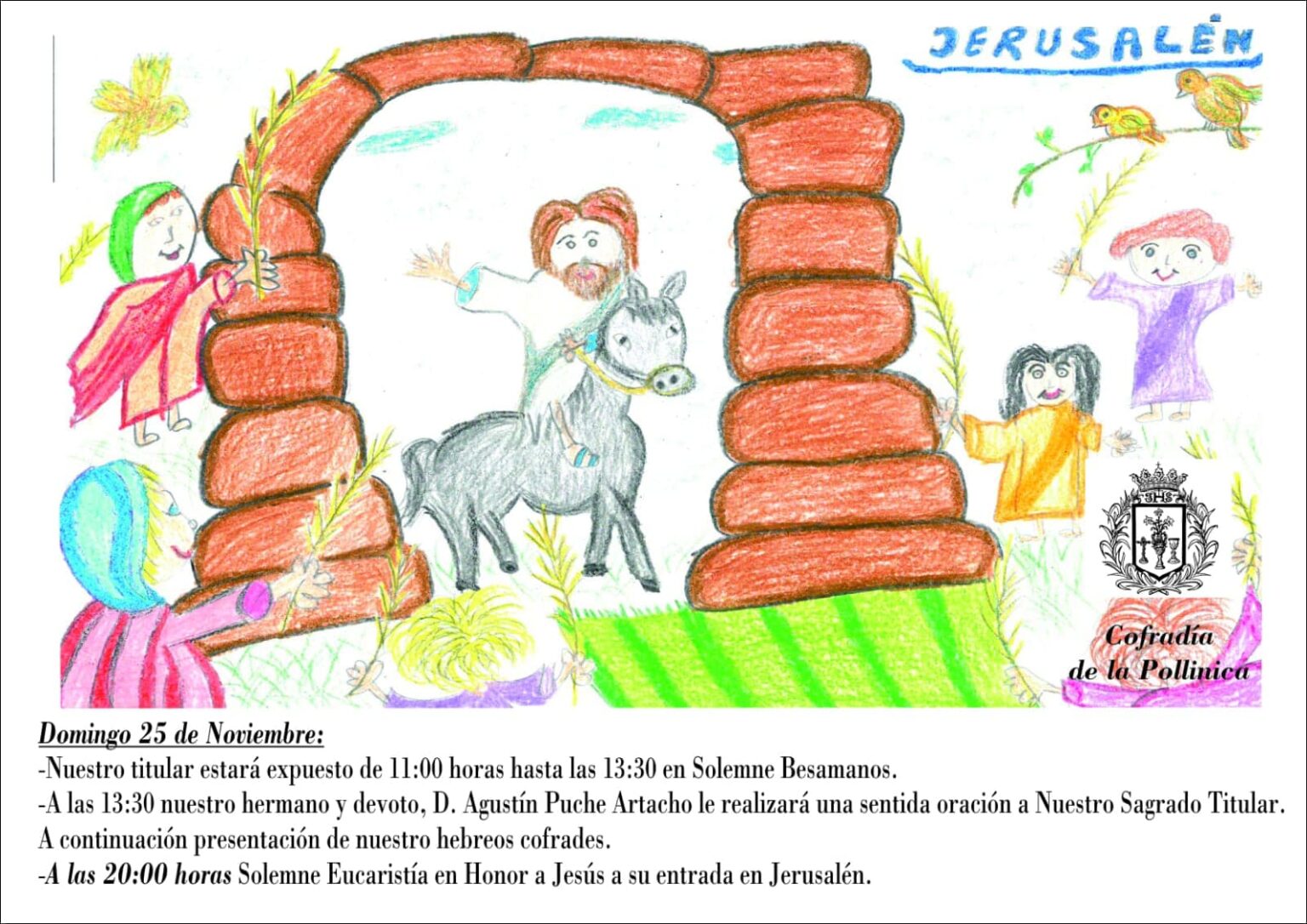 La Cofradía de la Pollinica de Antequera informa que tras la buena acogida de su primer concurso escolar de carteles con motivo de la Festividad de su Sagrado Titular Jesús a su Entrada en Jerusalén con motivo de la conmemoración de Cristo Rey este año han optado de nuevo por llevarlo a cabo.