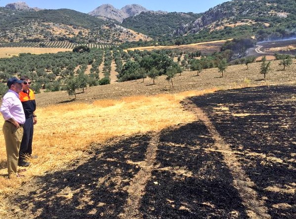 Estabilizado el incendio de cuatro hectáreas de terreno agrícola y media de forestal en el paraje Las Fresnedas (Antequera), según información municipal. El incendio se propagó concretamente en el Cortijo los Alemanes ubicado en el paraje de Las Fresnedas, próximo a las Pedrizas.