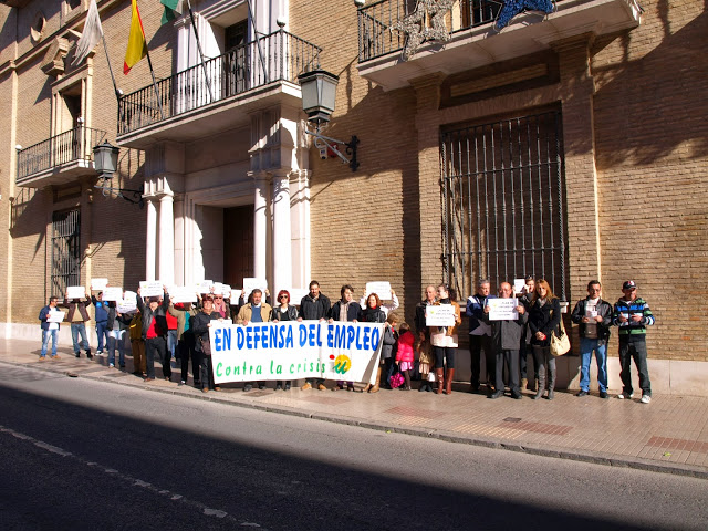 Izquierda Unida y sus simpatizantes se manifestaron en la mañana de hoy en la puerta del Ayuntamiento pidiendo al PP la puesta en marcha del plan de choque contra el paro en Antequera que ya fue aprobado por todos los partidos políticos presentes en el Pleno Municipal en el año 2011.