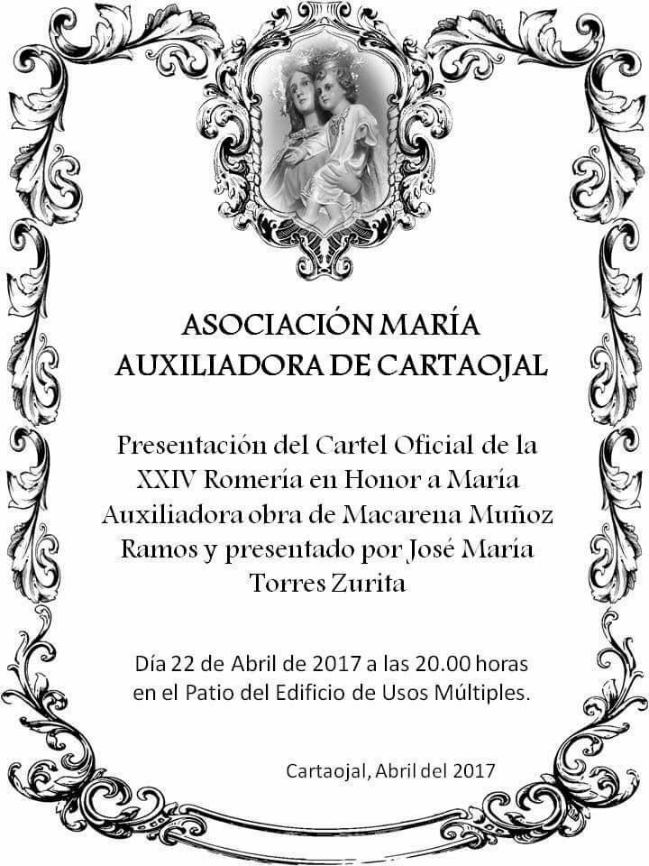 La Asociación de María Auxiliadora de Cartaojal inicia este próximo fin de semana también sus actos con motivo de la preparación de la vigesimo cuarta romería en honor a María Auxiliadora.