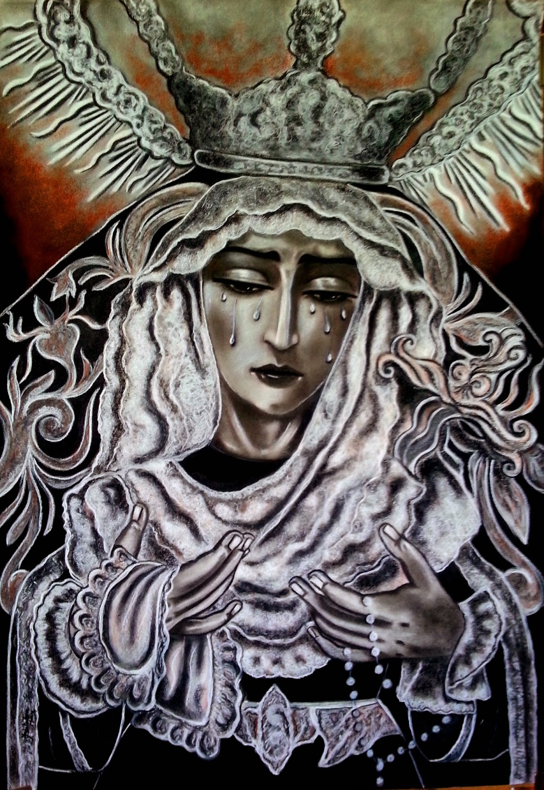 El pasado dia 6 de Marzo se presentaba en Benalmádena el cartel oficial de la Semana Santa de esta Localidad. La obra realizada por el artista Juan Carlos de la Torre está realizada bajo las técnicas del carboncillo, pastel y sanguina, algo hasta ahora inusual en los carteles oficiales de la Semana Santa de Benalmádena. La obra representa a la titular mariana de la Cofradia del Stmo. Cristo Coronado de espinas y la Virgen del Mayor vestida de reina, coincidiendo además con el X aniversario de la organización de esta cofradia. Al acto asistieron las cofradias de pasión y gloria de la Localidad y la corporación municipal encabezada por la Alcaldesa de Benalmádena.