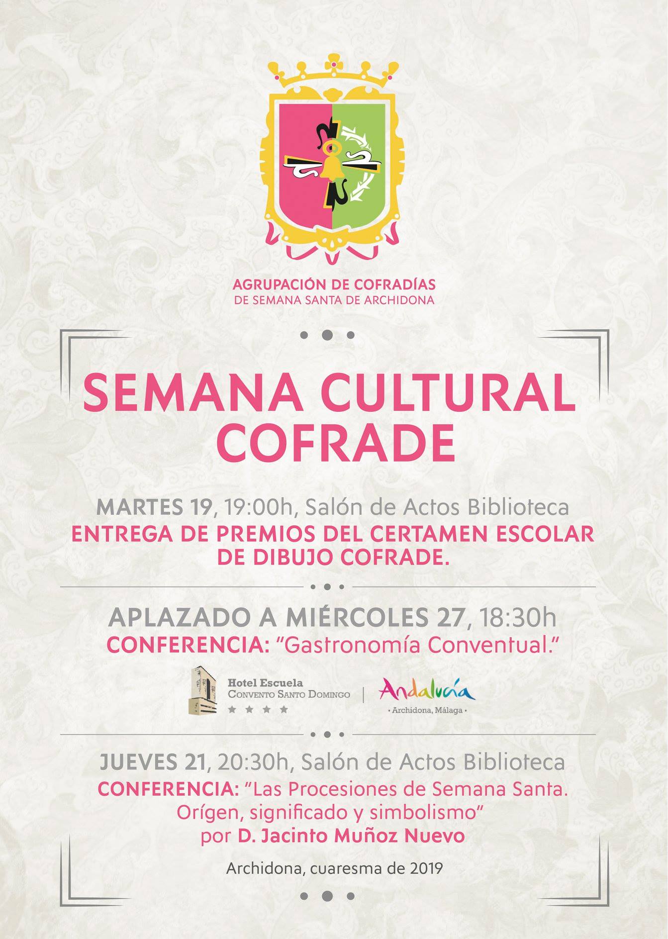 Los actos continúan este jueves, día 21 de marzo, a las 20.30 horas con la conferencia titulada “Las procesiones de Semana Santa. Origen, significado y simbolismo”, a cargo de Jacinto Muñoz Nuevo en el salón de actos de la Biblioteca.