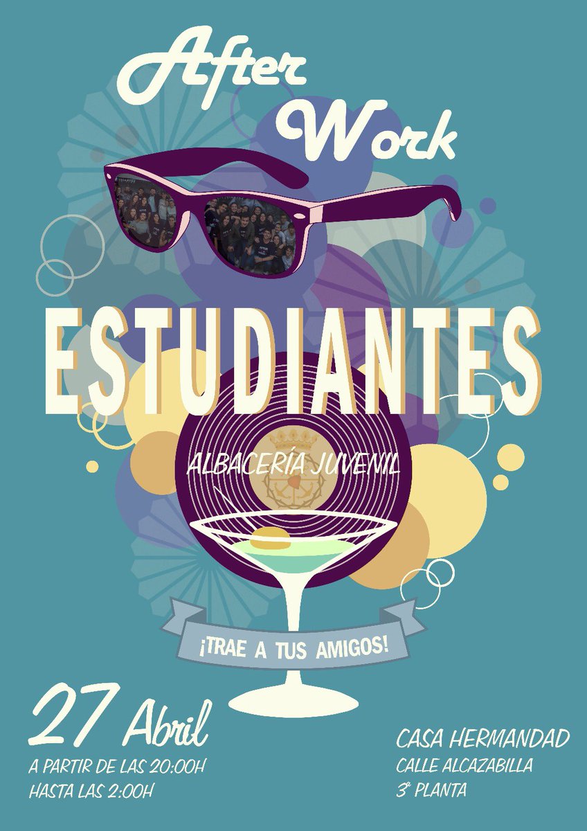 El próximo viernes día 27 de abril tendrá lugar en la Terraza de la Casa Hermandad de la Cofradía de Estudiantes de Málaga se celebrará una nueva edición del “After Work” Cofradía de Estudiantes, organizado por la Albacería Juvenil.