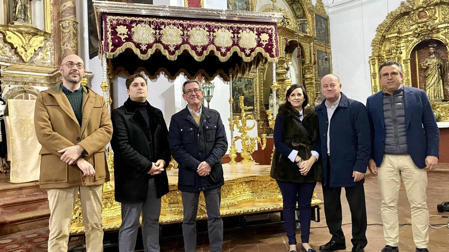 A las once de la mañana se abrían las puertas de San Francisco para recibir las primeras visitas de fieles y devotos, que pudieron contemplar el trono del Nazareno de la Sangre con el palio púrpura restaurado, ya que, como se había informado en días previos, la tarde del viernes los responsables de la empresa Santa Conserva, encargados de llevar a cabo dicha restauración ofrecieron una conferencia explicativa de todos los trabajos llevados a cabo en el mismo, así mismo, también se presentó la nueva cornisa en orfebrería del techo del palio, realizada en los talleres de Orfebrería San Juan en San Juan de Aznalfarache (Sevilla), bajo diseño del artista local Ángel Sarmiento Burgos y que (D.M.) se estrenará el próximo Lunes Santo.