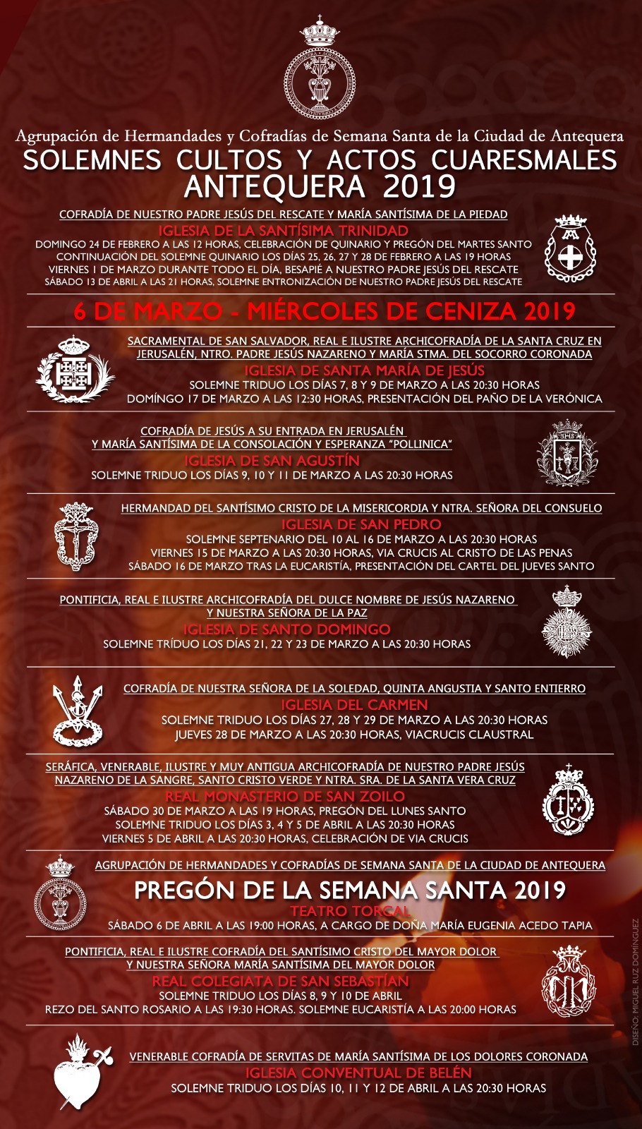 La Archicofradía de los Estudiantes de Antequera iniciará sus cultos cuaresmales el próximo miércoles 3 de abril a las 20.30 horas con celebración de la Eucaristía.