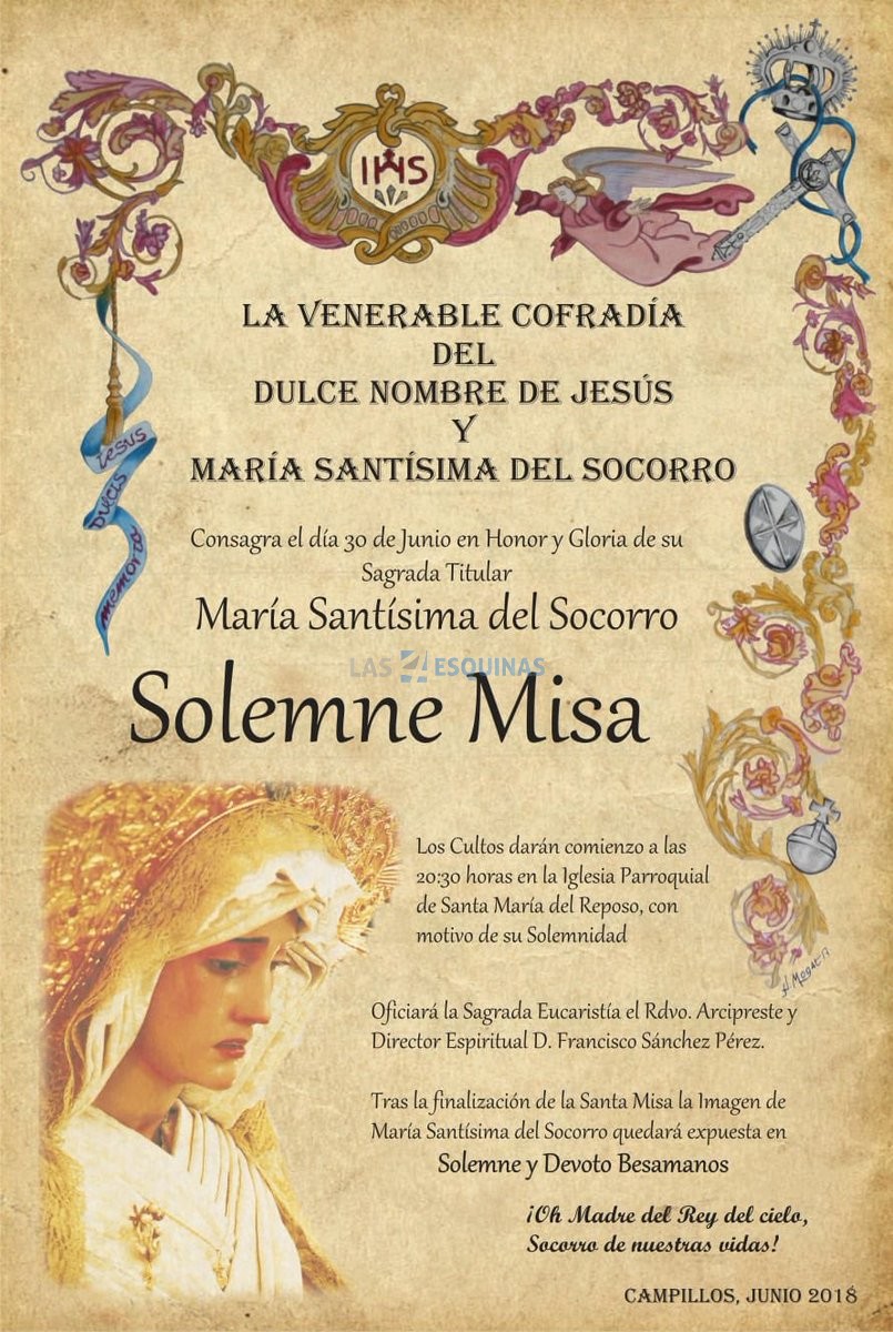 La Venerable Cofradía del Dulce Nombre de Jesús y María Santísima del Socorro de Campillos consagra el sábado 30 de junio Solemne Misa en honor a su Sagrada Titular, María Santísima del Socorro.