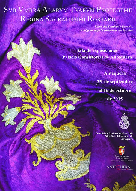 En esta ocasión, la muestra lleva el titulo «Sub umbra alarum tuarum protégeme Regina», lo que viene siendo traducido del latín al castellano como «Reina del Santísimo Rosario, protegeme bajo la sombra de tus alas. En la misma se podrán contemplar algunas piezas del ajuar textil de la Sagrada Imagen así como dos mantos de reciente incorporación.