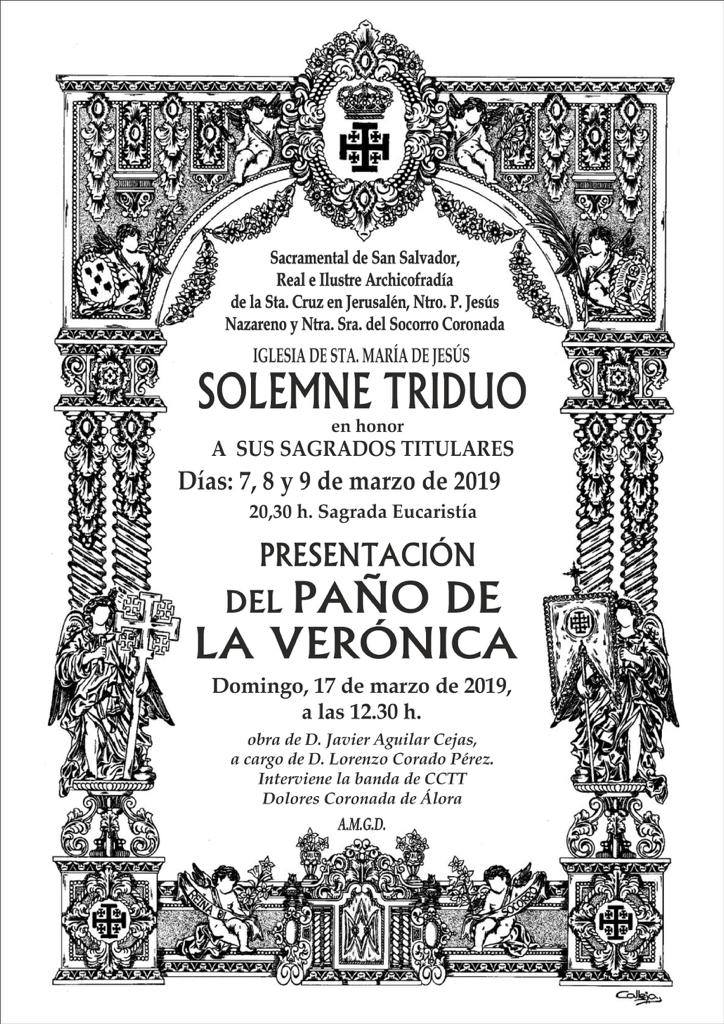 La Archicofradía del Socorro de Antequera organiza para este domingo la presentación del paño de la Santa Mujer Verónica, obra que este año ha sido encargada al pintor Javier Aguilar Cejas.