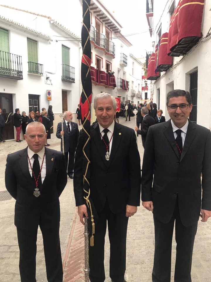 Ocasión para la cual su Hermano Mayor Antonio Cabello y miembros de la Junta Directiva acompañaron en la misma con el guión presidencial de la corporación cofrade de Antequera por las calles del municipio malagueño.