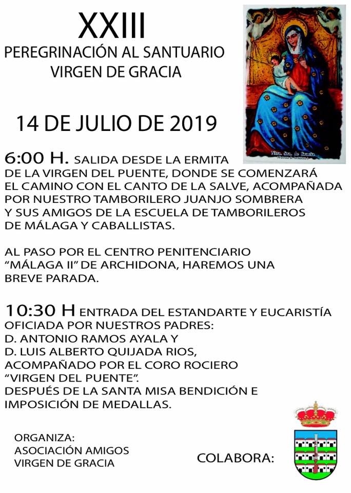 La Asociación de Amigos de la Virgen de Gracia organizan su 23º peregrinación al santuario de la Virgen de Gracia para el próximo domingo 14 de julio.