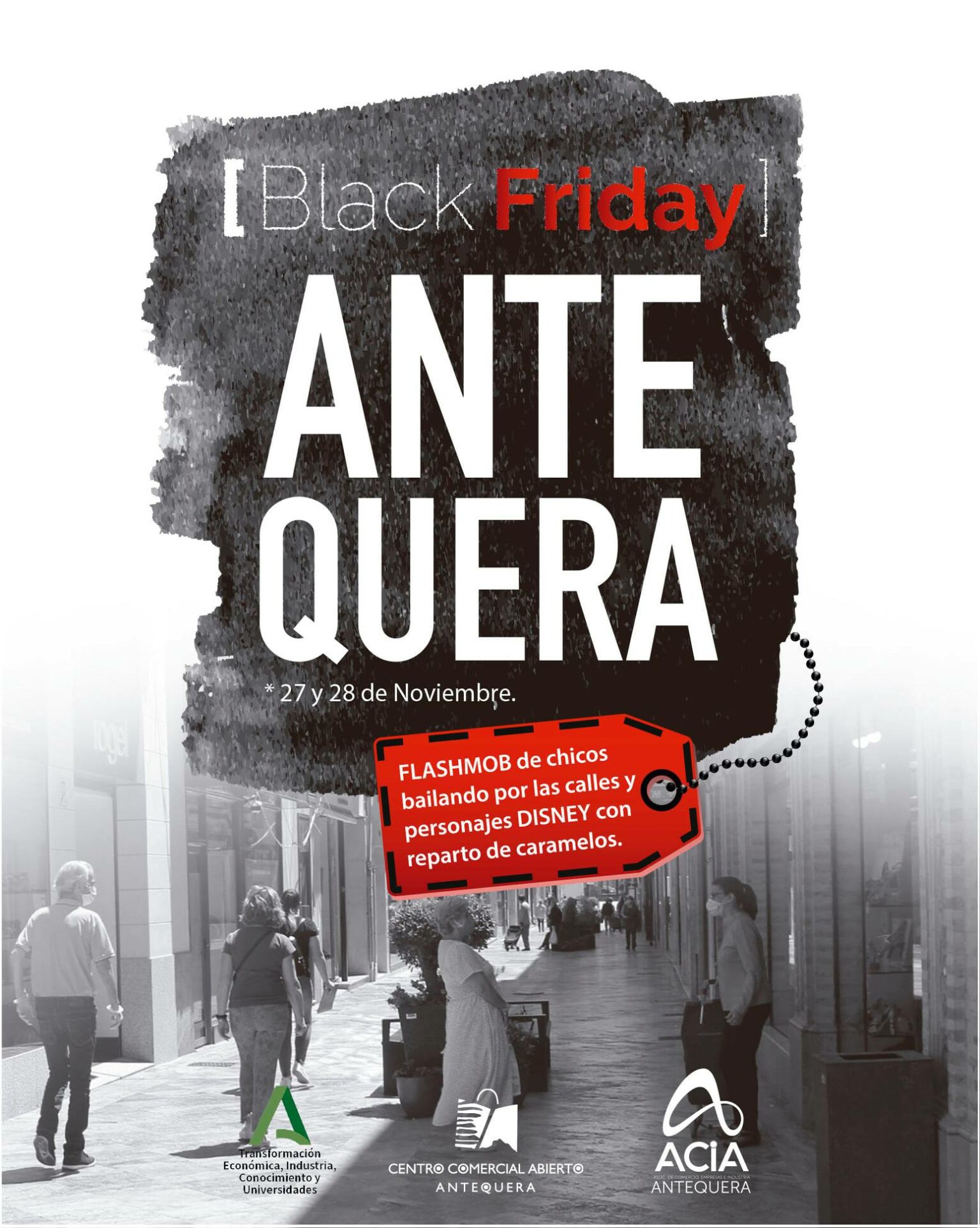 La Asociación del Comercio e Industrias de Antequera, ACIA, así como el Centro Comercial Abierto de la ciudad, incentivarán la celebración del «Black Friday» durante las jornadas del viernes 27 y sábado 28 de noviembre en las calles de Antequera.