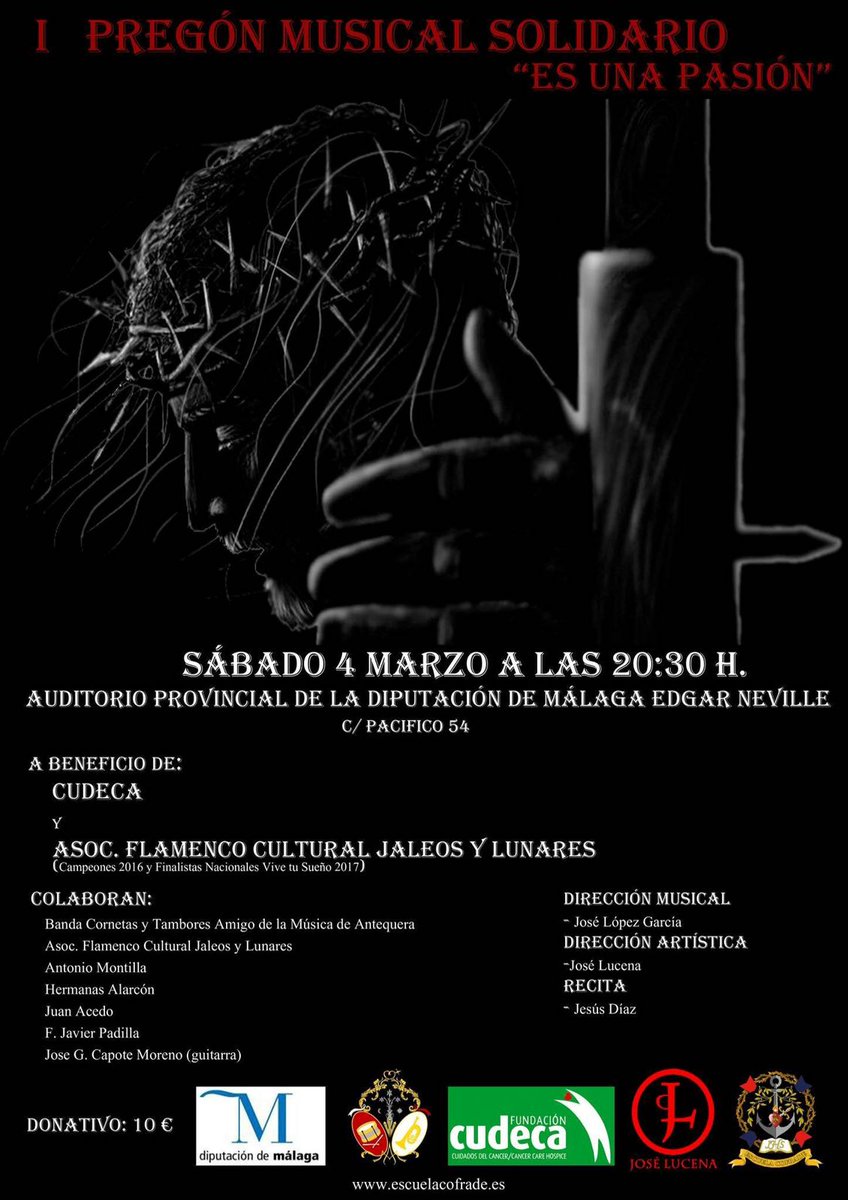 Se trata del primer pregón musical solidario denominado “Es una Pasión” a beneficio de CUDECA y la Asociación Flamenco Cultural Jaleos y Lunares .