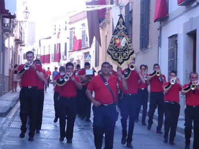 | La Banda de CCTT Amigos de la Música de Antequera interpretando sus marchas en la procesión del Carmen de Antequera |