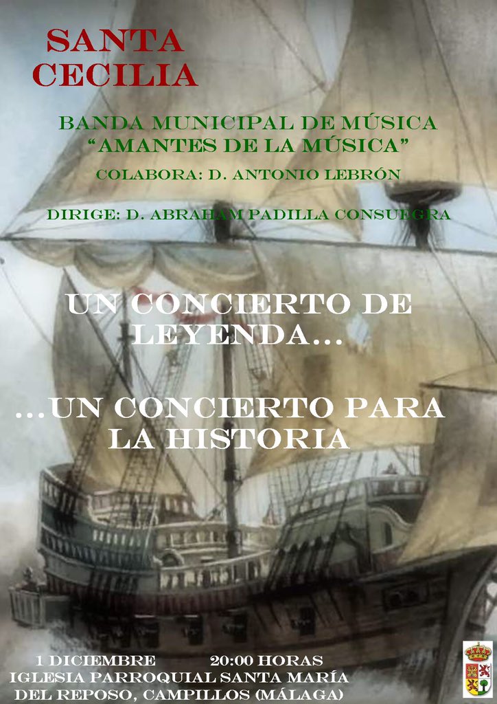 “Un concierto de leyenda… un concierto para la historia” es el título de este concierto que se llevará a cabo el próximo sábado 1 de diciembre a partir de las 20.00 horas en la iglesia parroquial Santa Maria del Reposo de Campillos.
